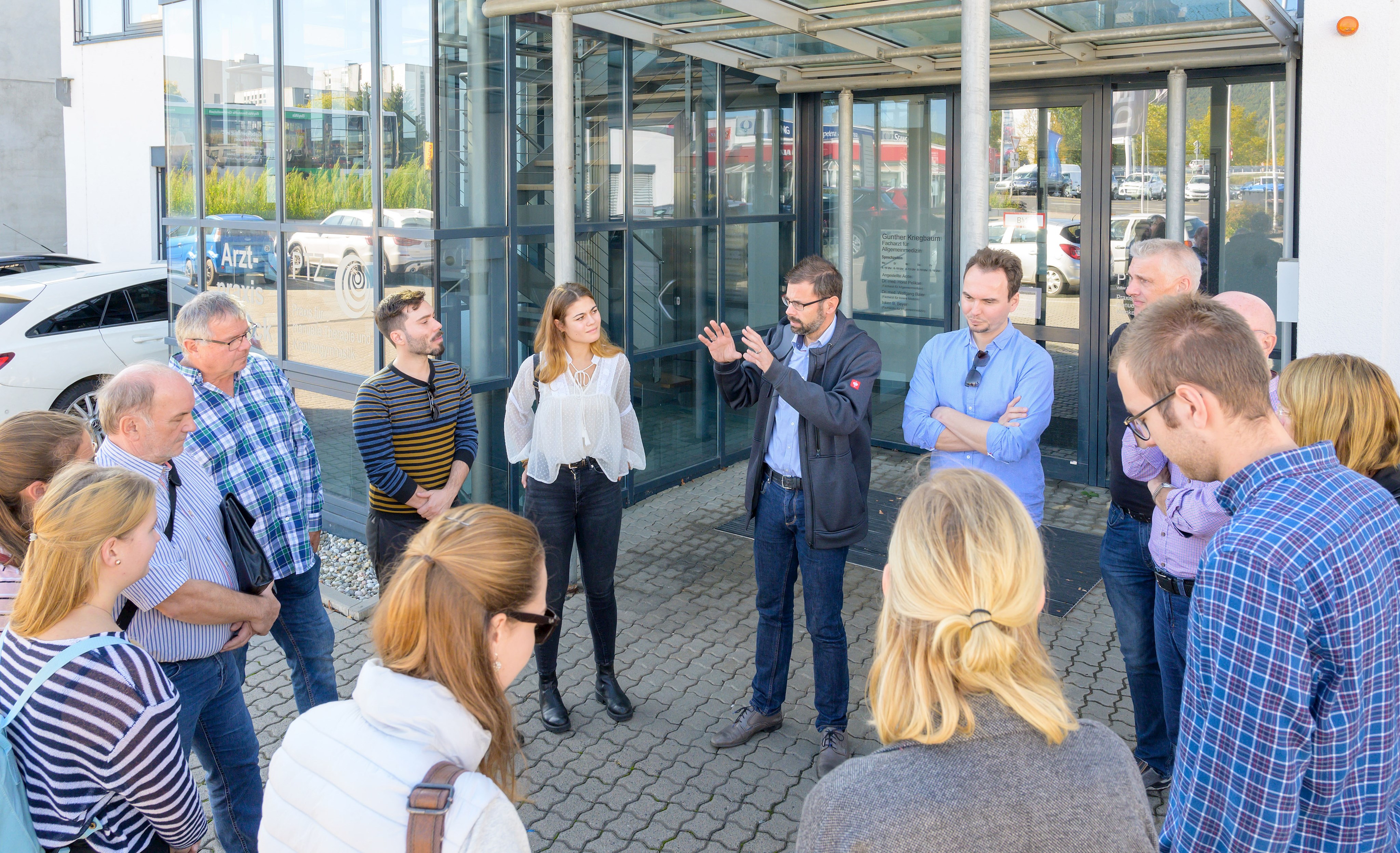 Gunther Kriegbaum stellt den Medizinstudierenden seine Praxis in Kleinheubach vor.