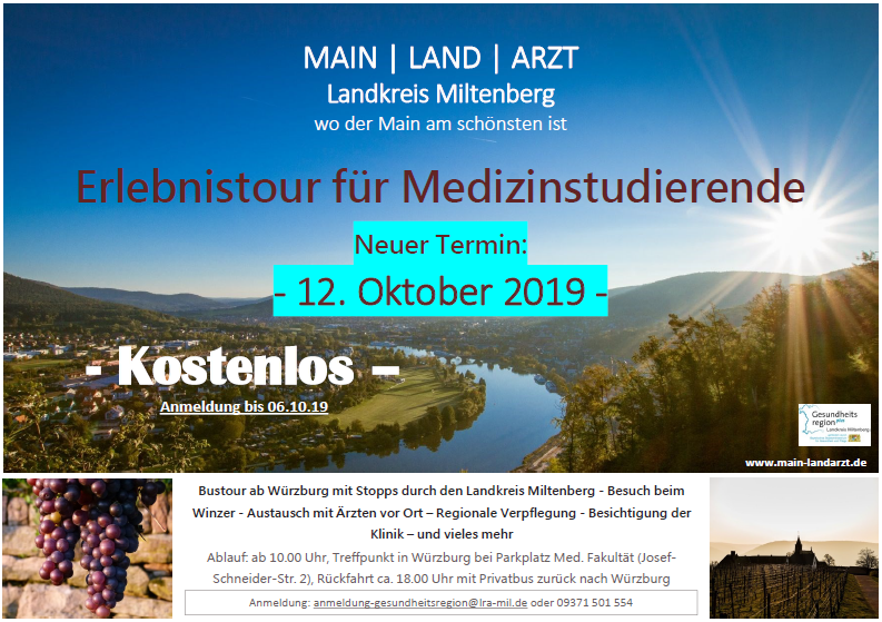 Eine Bustour ab Würzburg mit Stopps durch den Landkreis Miltenberg - Besuch beim Winzer - Austausch mit Ärzten vor Ort – Regionale Verpflegung - Besichtigung der Klinik – und vieles mehr