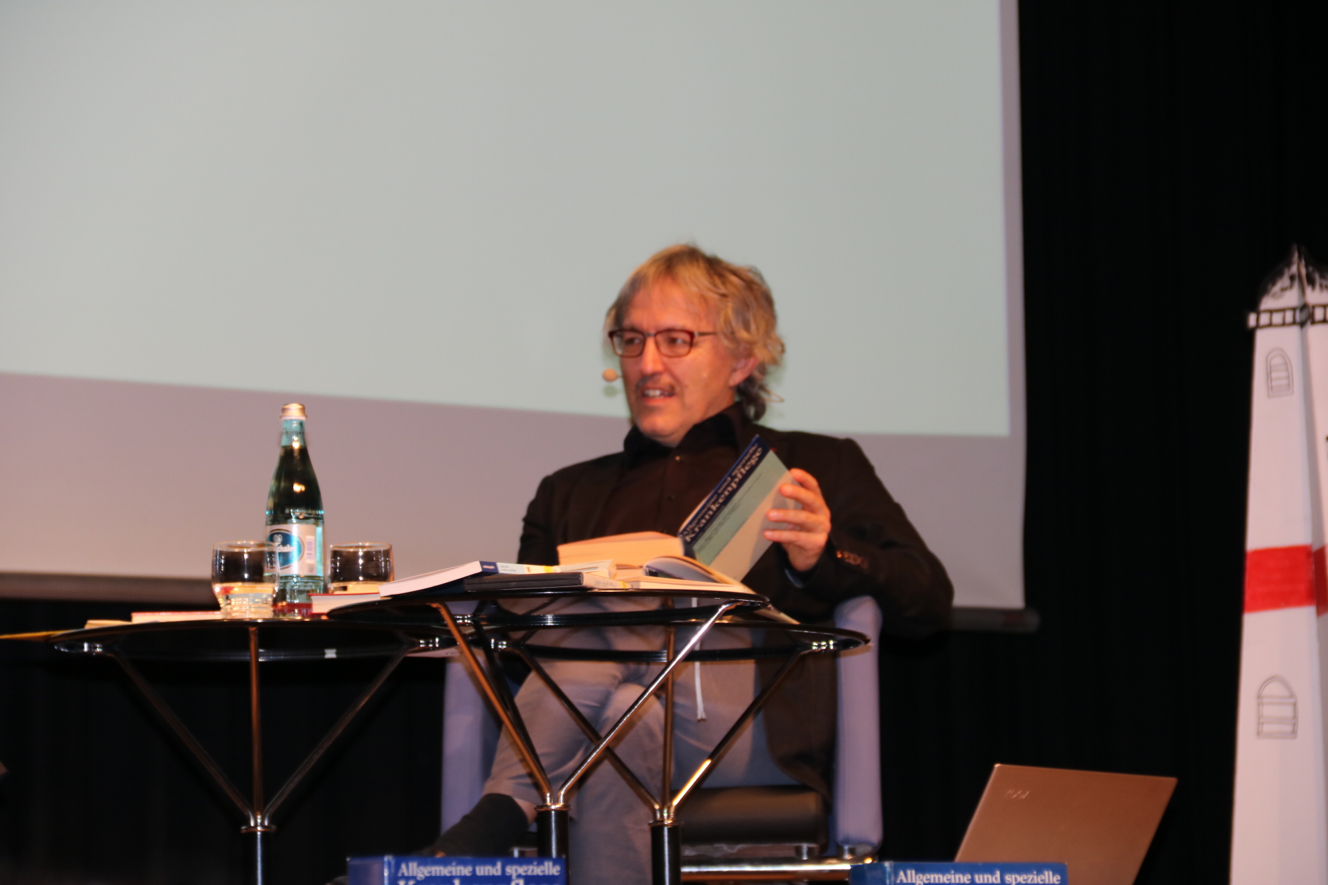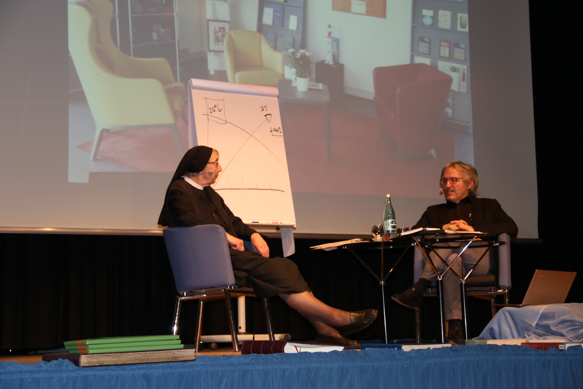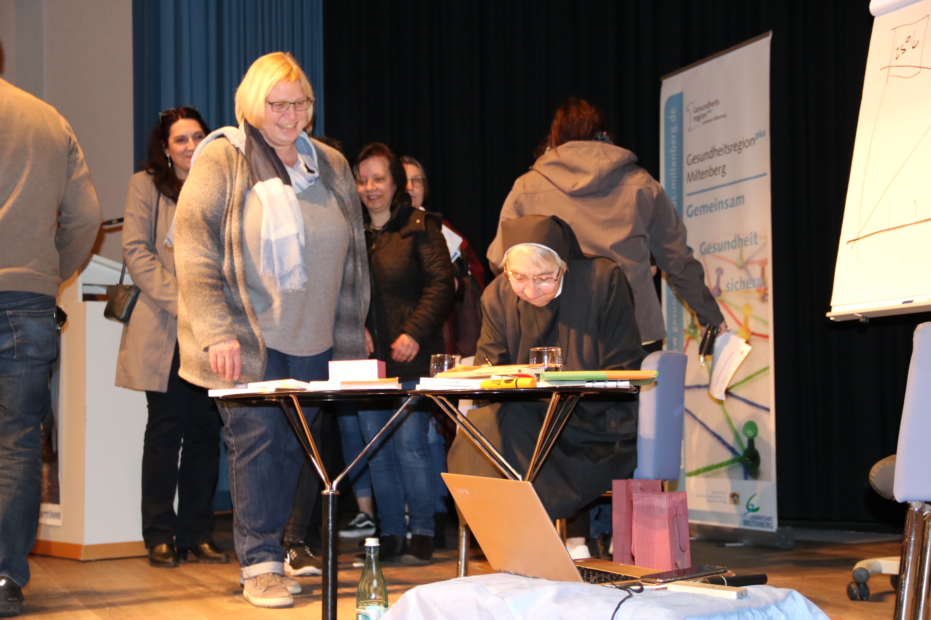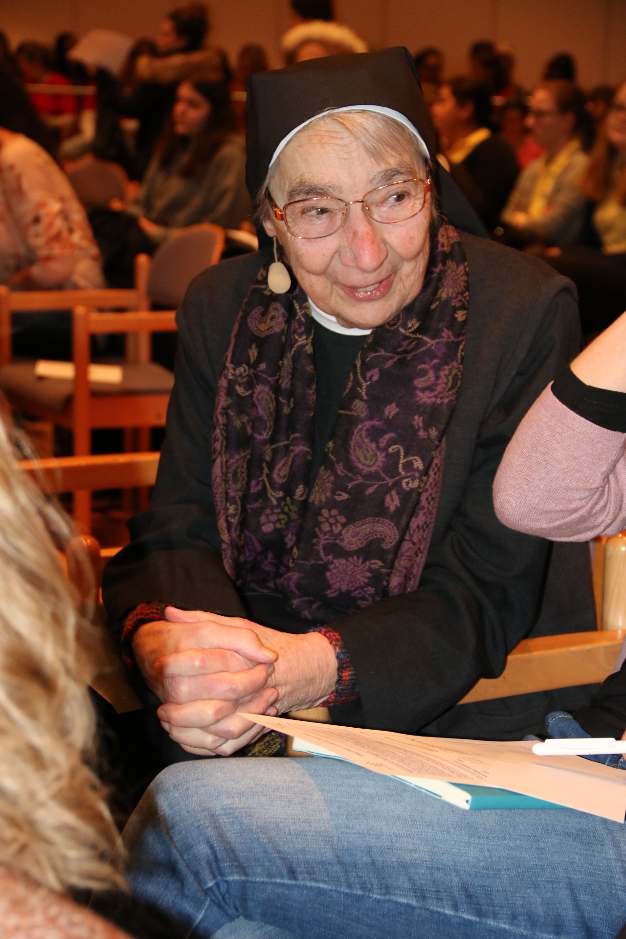 Über 280 beruflich Pflegende füllten das Elsenfelder Bürgerzentrum am 16. März 2018, als die bekannte Ordensschwester Liliane Juchli, Autorin des ersten deutschsprachigen Pflegelehrbuchs und Begründerin des Pflegemodells der Aktivitäten des täglichen Lebens, über ihre Arbeit berichtete. Die 85-jährige Ordensfrau, Krankenschwester und Lehrerin für Krankenpflege referierte mit viel Witz und Charme gemeinsam mit dem Pflegeexperten Stefan Knobel zum Thema „Ich pflege als die, die ich bin.“